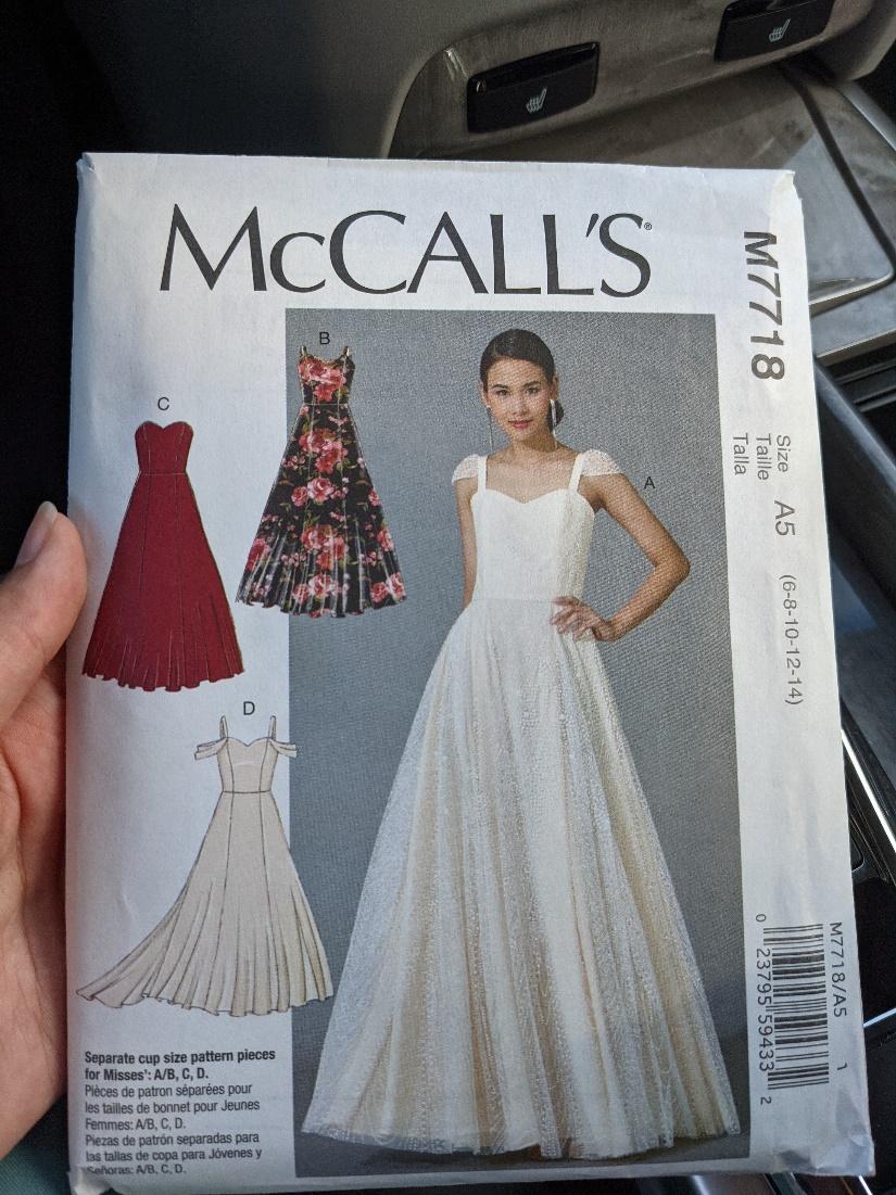 I started my drafting by making a mockup of my skirt. I picked up a McCall’s pattern that had a skirt with a train. I had a couple of other bridal skirt patterns, but those did not include a train option. Also, the pattern that included a train was slightly fuller than the other skirts. I decided to give that one a shot and make a mockup of it.