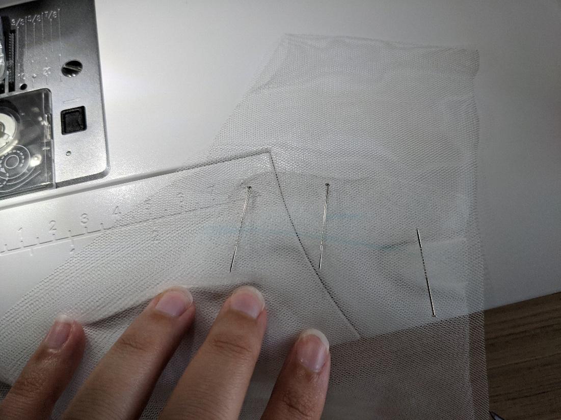 I ended up deciding that I did not have enough fabric or time to make the train. I wonderful lady who was cutting some fabric for me when I was shopping gave me the wonderful idea to purchase a cathedral length veil. I was not going to make my veil, and this would save me a lot of time trying to find a matching fabric or some other solution to having a train that I really did want. I found a lovely cape veil on Esty and my veil problem was solved.Â