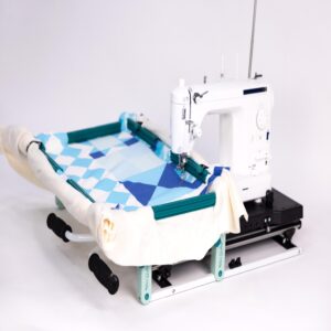The Mini Quilter is designed to make longarm quilting both accessible and enjoyable. Compatible with most sewing machines that have an 8” to 13” throat space, this compact frame fits easily on most tables or flat surfaces, providing a seamless quilting experience in the comfort of your own home.