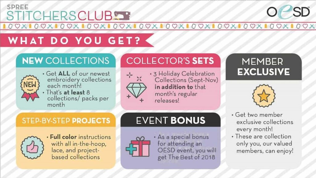 Whether you’re just starting out or have years of experience, the SPREE Stitchers Club is perfect for every home embroidery enthusiast. With a constantly evolving collection of designs—from timeless classics to fresh, modern motifs—you’ll always find something new to spark your creativity. Don’t settle for the same old patterns. Join OESD’s SPREE Stitchers Club today and unlock endless inspiration for your next embroidery project!