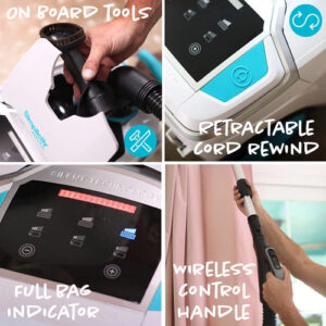 Packed with amazing featured to elevate your cleaning experience: on board tools, retractable cord rewind, full bag indicator, wireless control handle.Â